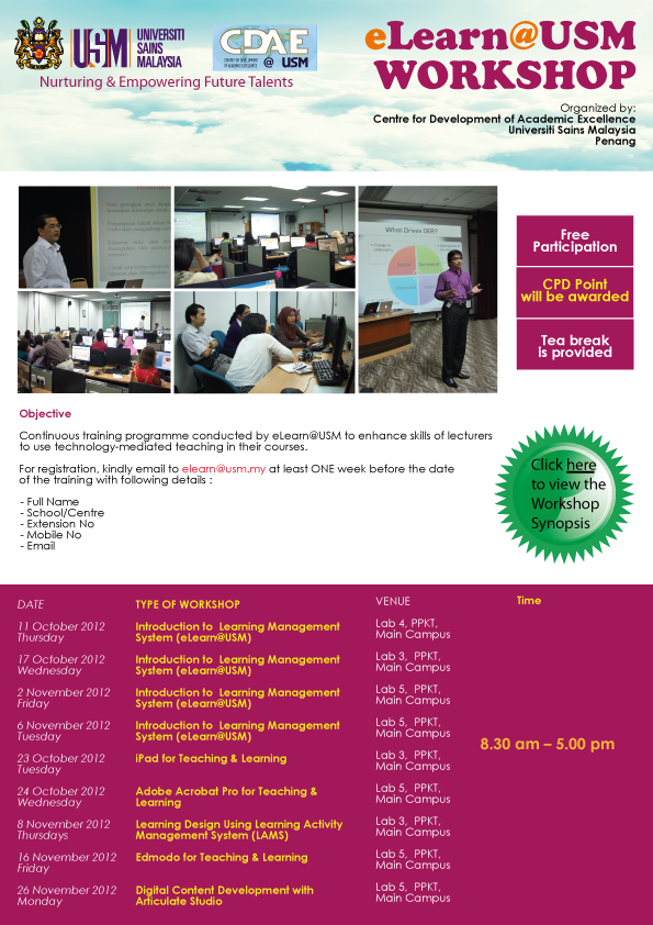 ELEARN@USM WORKSHOP : SEMESTER 1 ACADEMIC SESSION 2012/2013