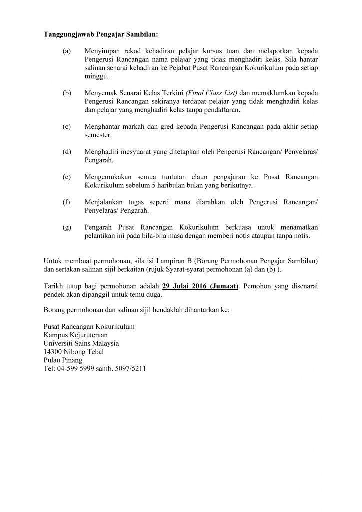 Jawatan Kosong Pengajar Sambilan Kursus Kokurikulum